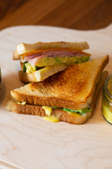 Avocado-Käse-Schinken-Sandwich mit selbst gemachter Mayonnaise